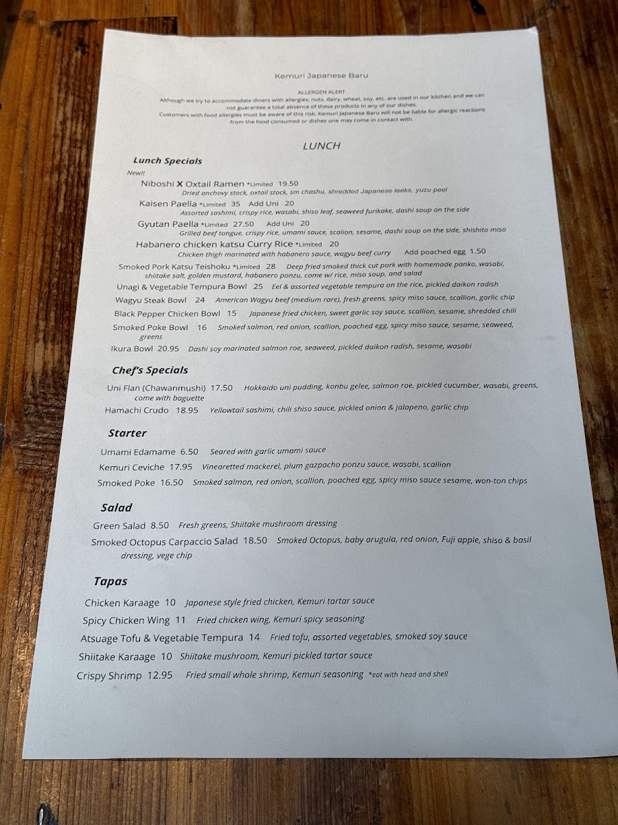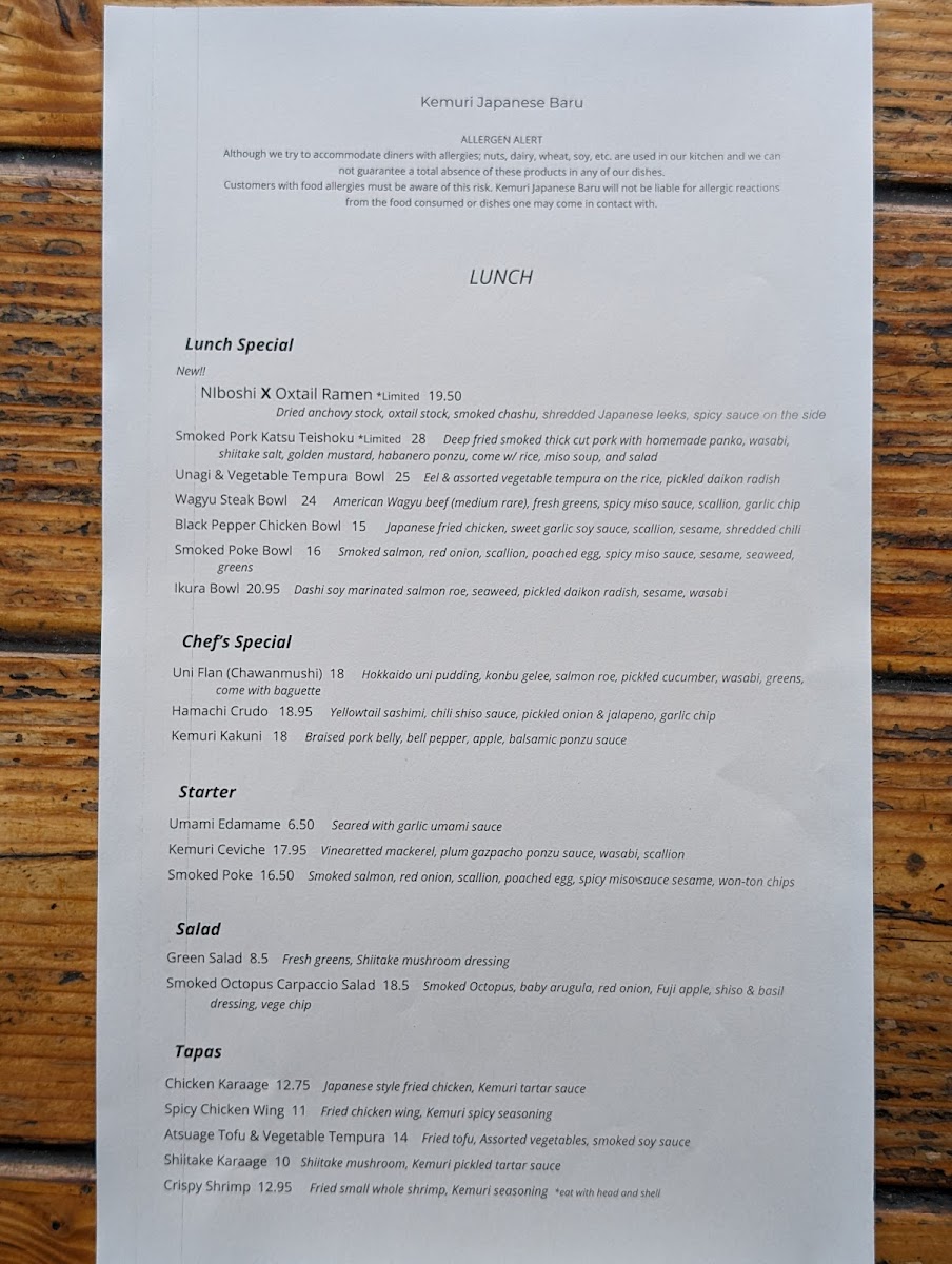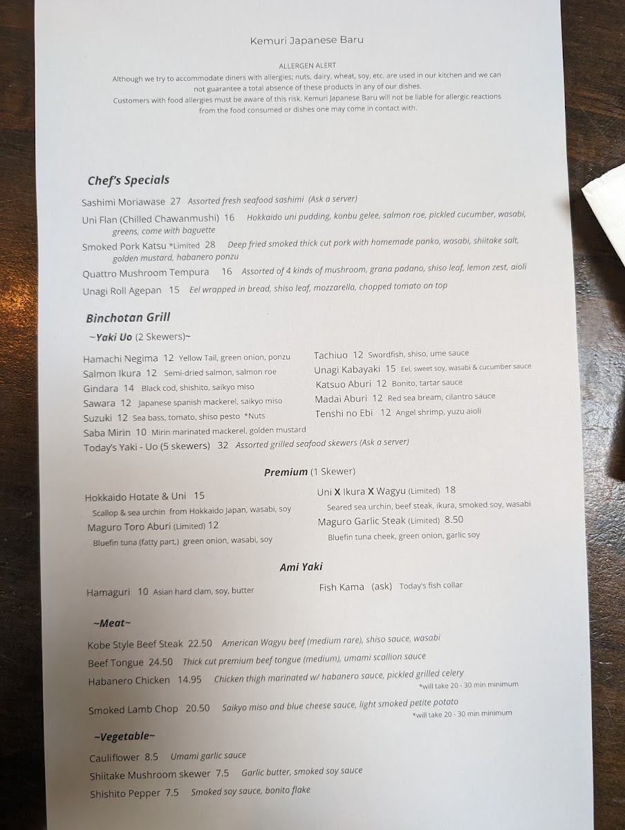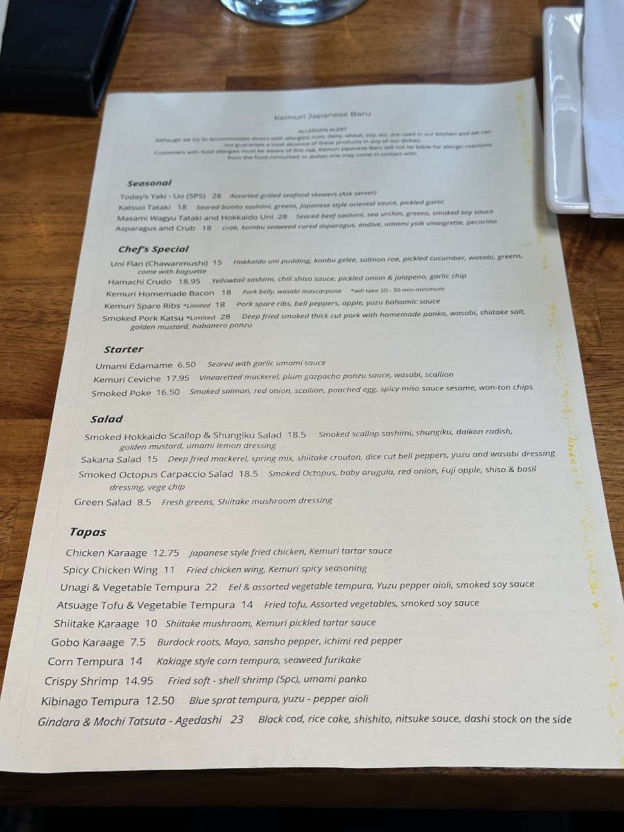 The friendly staff at Kemuri enhances the experience, offering knowledge about the menu and making personalized recommendations that ensure every visit feels tailored just for you. With a focus on fresh ingredients and artistic presentation, Kemuri promises an unforgettable dining experience where every dish tells a story.